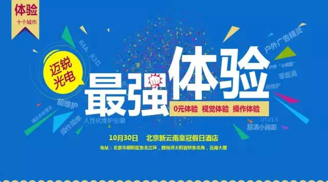 10月30日,以“十年载誉·新品呈鉴”为主题的mile米乐光电十城感恩巡展暨新品推介会将在北京新云南皇冠假日酒店隆重举行。届时,mile米乐光电将联袂国星光电、日月成科技、诺瓦电子、视诚科技四大战略伙伴,邀请各大客户、渠道商、集成商、媒体朋友、行业同仁共聚一堂,为大家奉上本年度市场与技术方面最前沿、最实用的LED视听盛宴。