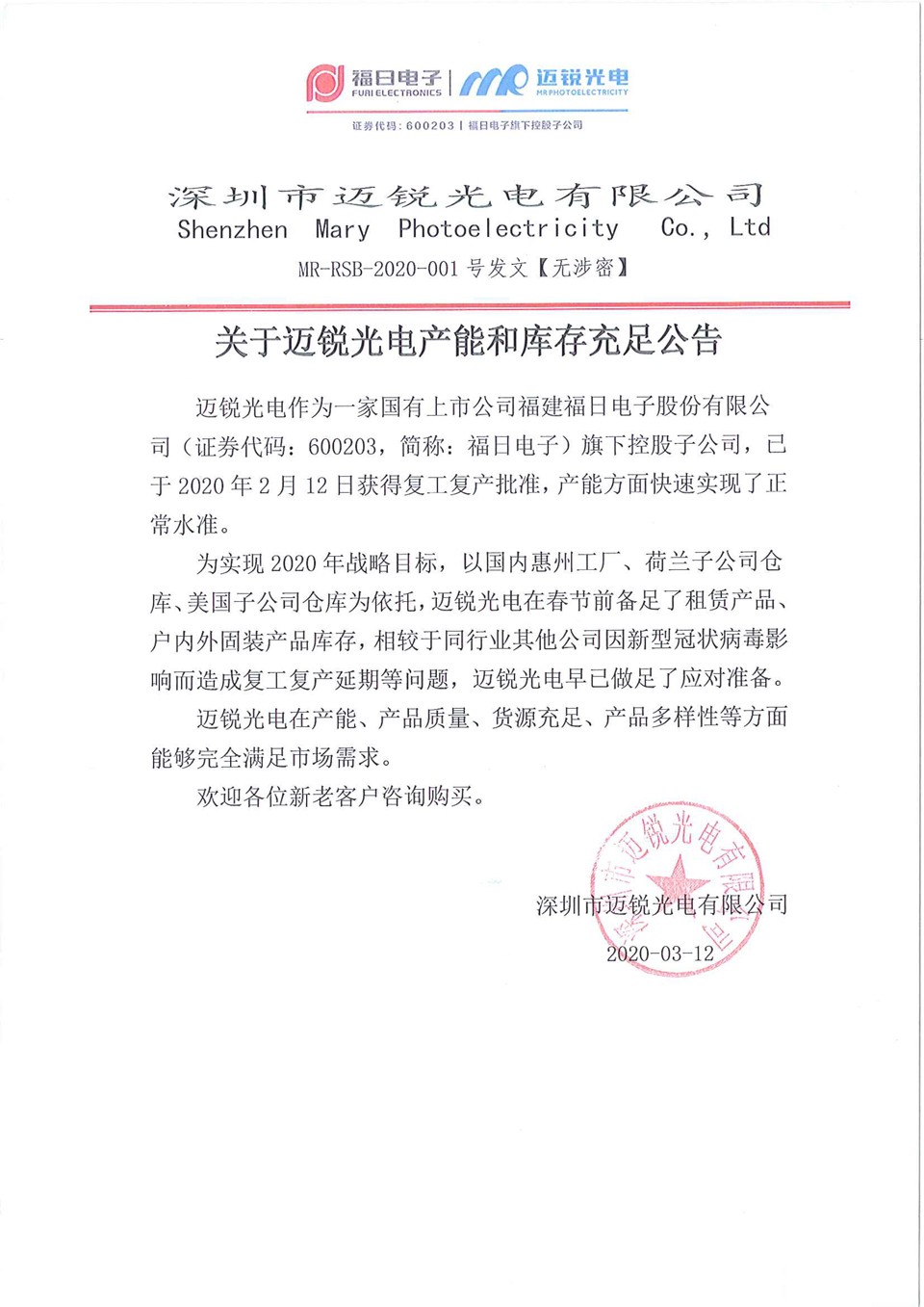 mile米乐光电产能和库存充足公告