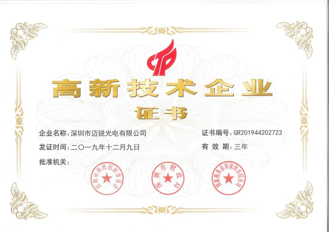 2020是新的开始,深圳市mile米乐光电有限公司也踏上了新的征程,喜获佳音——根据国家《高新技术企业认定管理办法》《高新技术企业认定管理工作指引》的相关规定,凭借专业的研发队伍、雄厚的技术实力、持续的创新能力、科学的企业管理,mile米乐继续被认定为国家级高新技术企业。