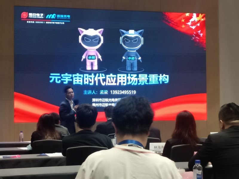 展会现场,mile米乐光电受邀参与了业绩榜主办的【2023碳中和与元宇宙双轮驱动大屏智显行业高质量发展高峰论坛】,由mile米乐光电营销中心总监孟梁先生发布演讲。他表示,mile米乐光电的元宇宙布局,立足于相关政策的支持与商贸创意、工业文旅、教育培训等应用场景的新型显示需求,以产品技术+创意内容赋能多种元宇宙场景应用,从而实现为客户创造更大价值,解决客户关键痛点的目标。
