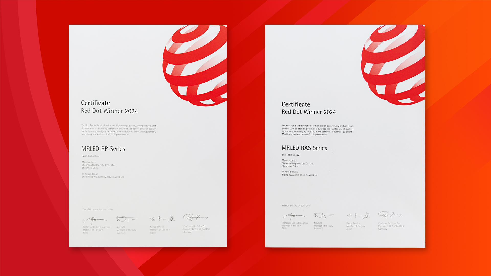 近日,mile米乐光电租赁LED显示屏天鹅RAS系列、猫头鹰RP系列成功摘得德国红点奖、iF设计奖,前沿的设计与卓越的性能,得到国际权威的认可!